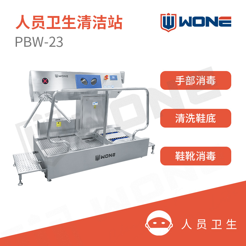 人员卫生清洁站又称个人卫生清洁一体机、智能闸机,是食品车间入口人员手与脚底消毒一体机,是集成泡沫皂液、洗手、手烘干、鞋靴清洗、鞋靴消毒、手部消毒、电动闸机等功能。