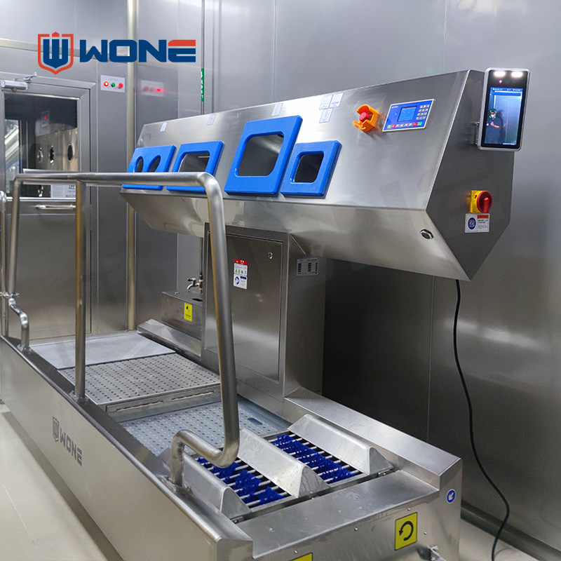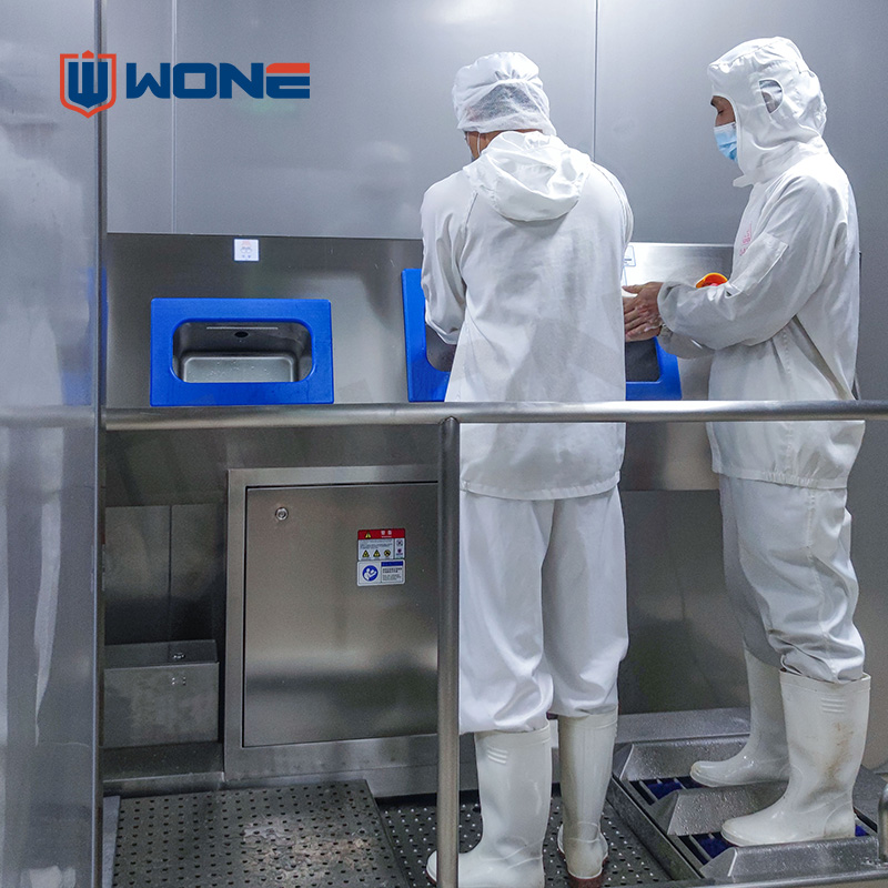 联合食安人员卫生清洁站 PBW-25,人脸识别管理、连通钉钉考勤系统,通道式洗手、手烘干、手消毒、鞋底清洗、鞋靴消毒、闸机功能